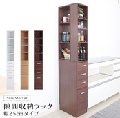 新しい収納のスタイルを提案する、【隙間収納ラック 幅25cm】。このラックは、限られたスペースを有効活用できるスリムなデザインが特徴で、お部屋の整理整頓をサポートします!