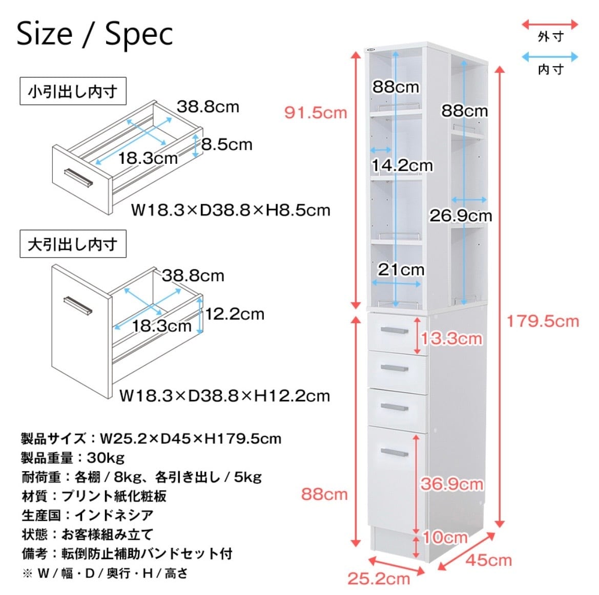 - サイズ: 幅25cmのスリムなデザインで、どんな空間にも馴染みやすいスタイル(詳細はサイズガイドをご覧ください)