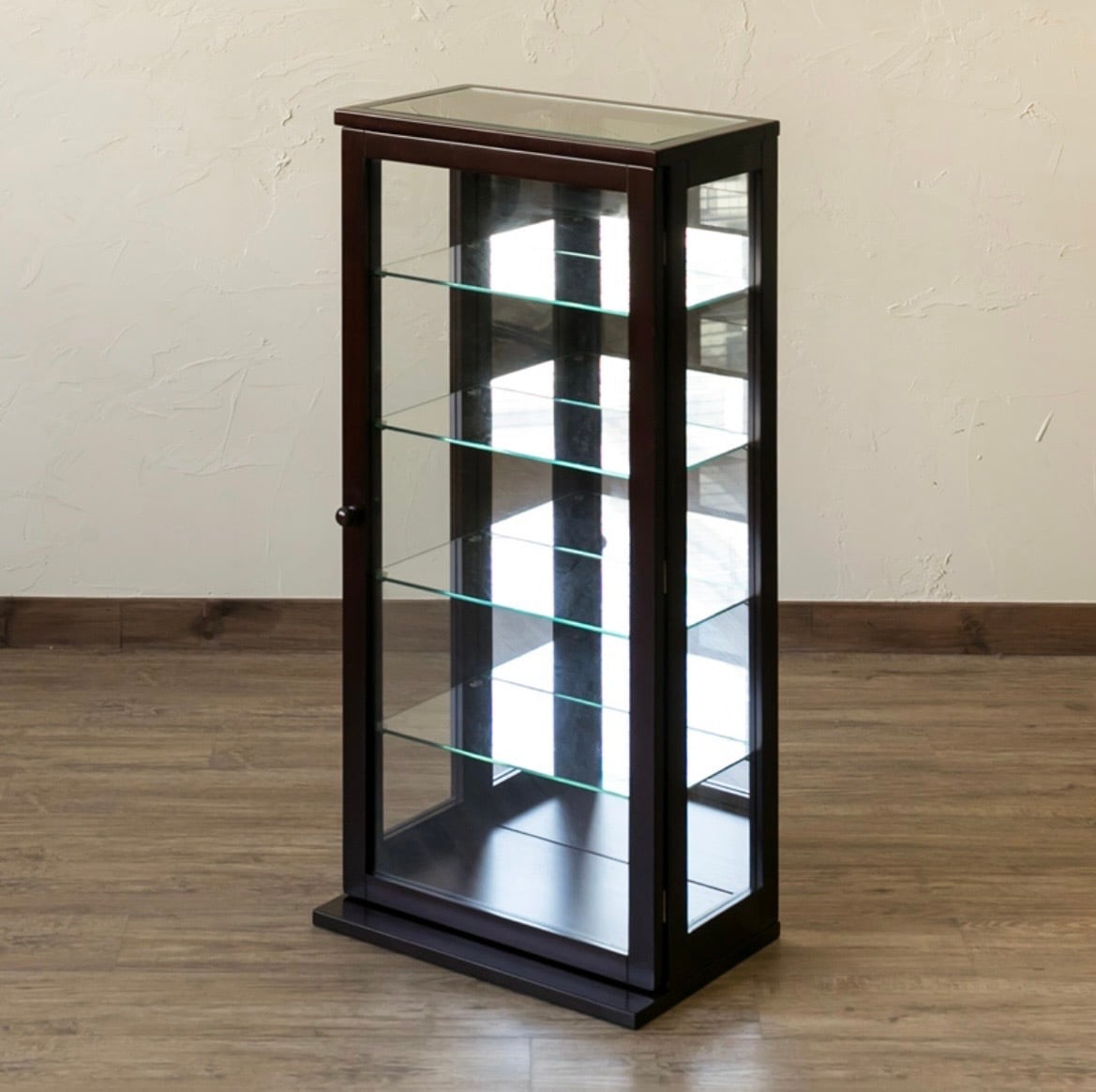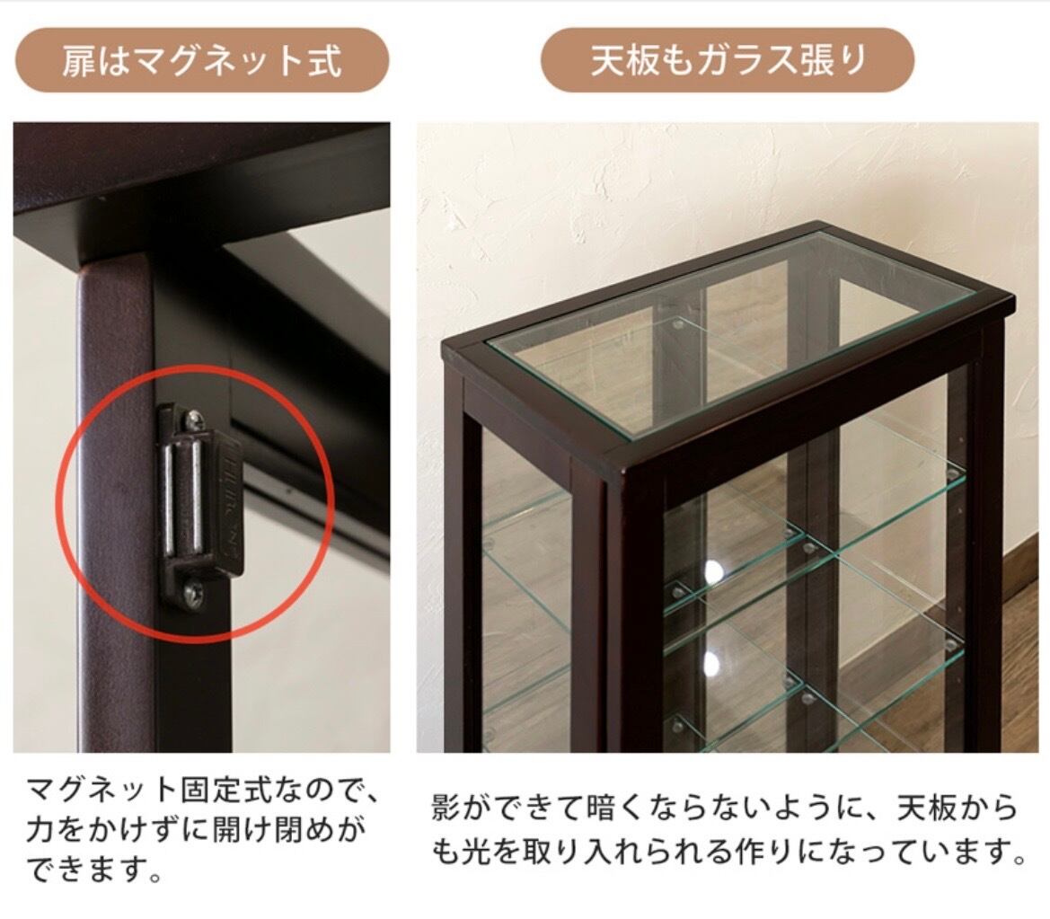 - タテ型ハイタイプのデザインは、縦のラインが空間をスリムに見せ、狭い場所でもスッキリとした印象を与えます。ガラス扉により、コレクションが一目で見渡せ、手軽に取り出すことができる便利な設計です!