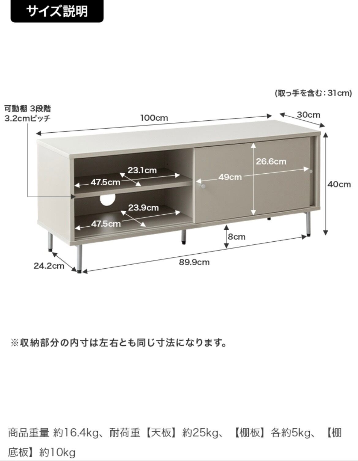 - 幅100cmのコンパクトなデザインは、さまざまなサイズのテレビに対応し、空間を有効活用します。引き戸式の扉がスムーズに開閉し、収納の利便性を高めます!
