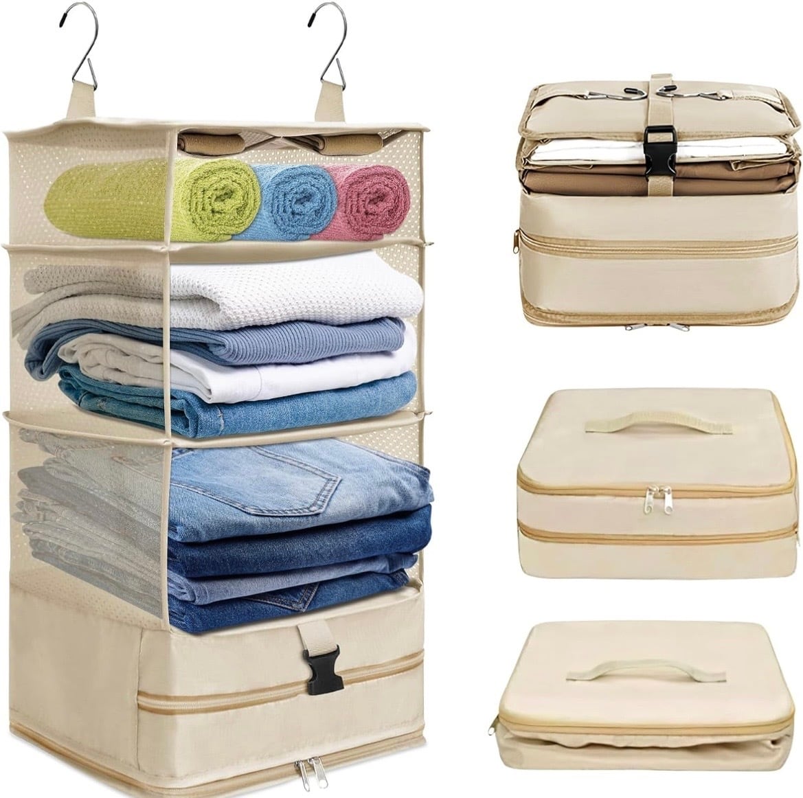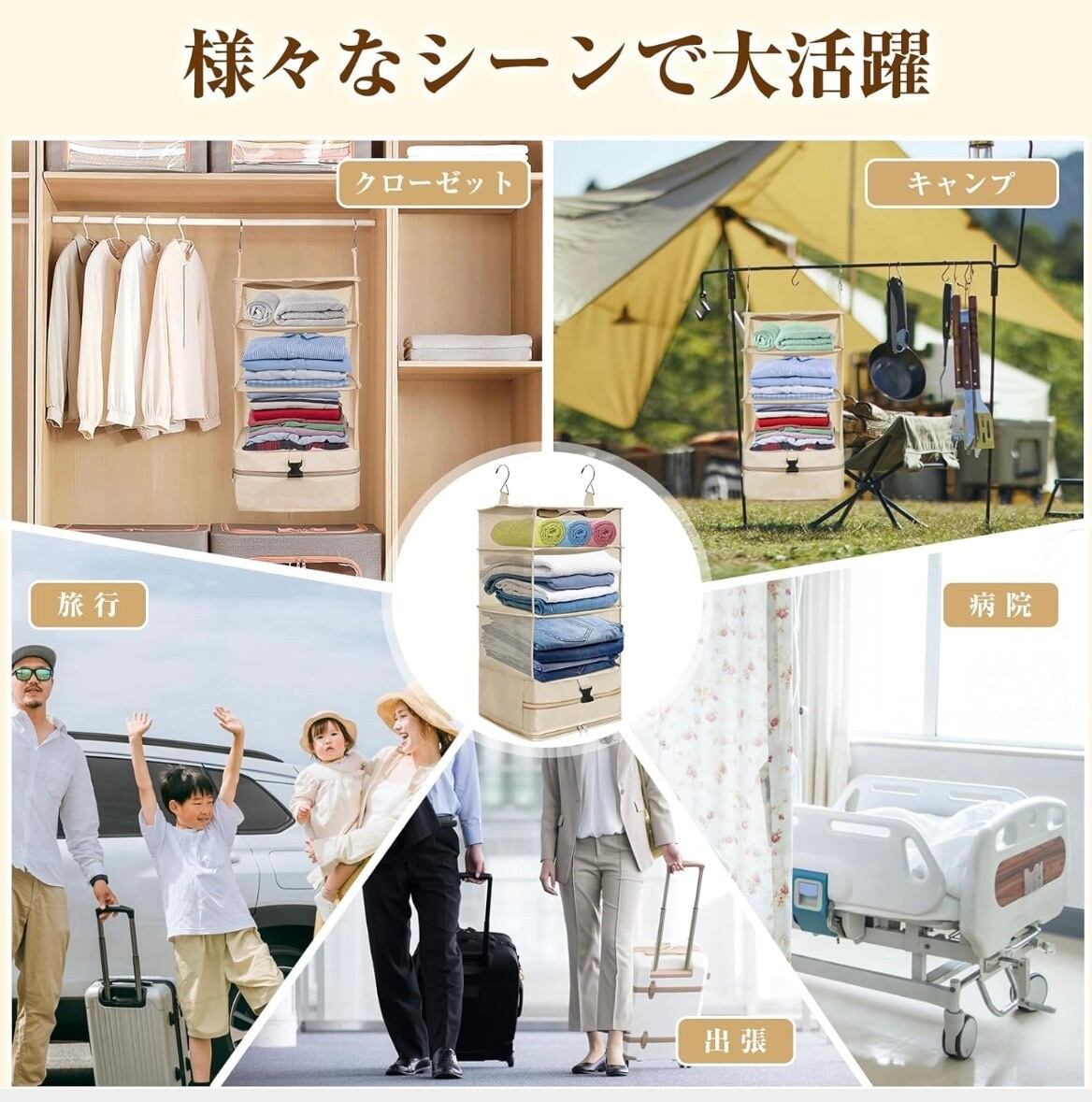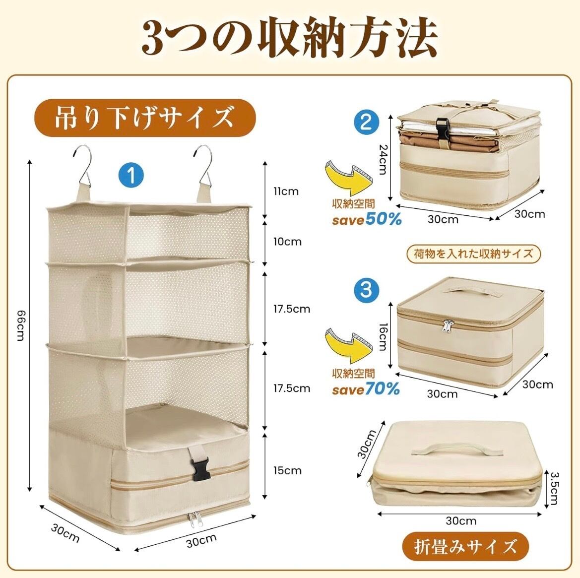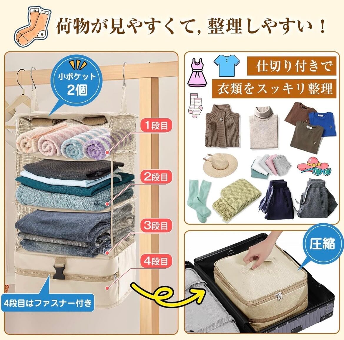 - 4段構造で、衣類や小物をすっきり整理でき、吊り下げて使えるので限られたスペースを有効活用できます!旅行中も手の届くところに必要なアイテムをすぐに取り出せる便利さを実感してください。