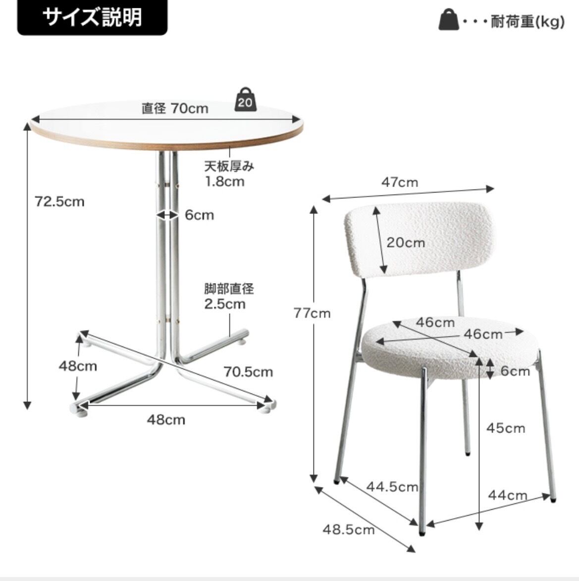 【3点セット】幅70cm 丸型カフェテーブル+チェア2脚 | ハレルヤ|韓国&北欧インテリア雑貨