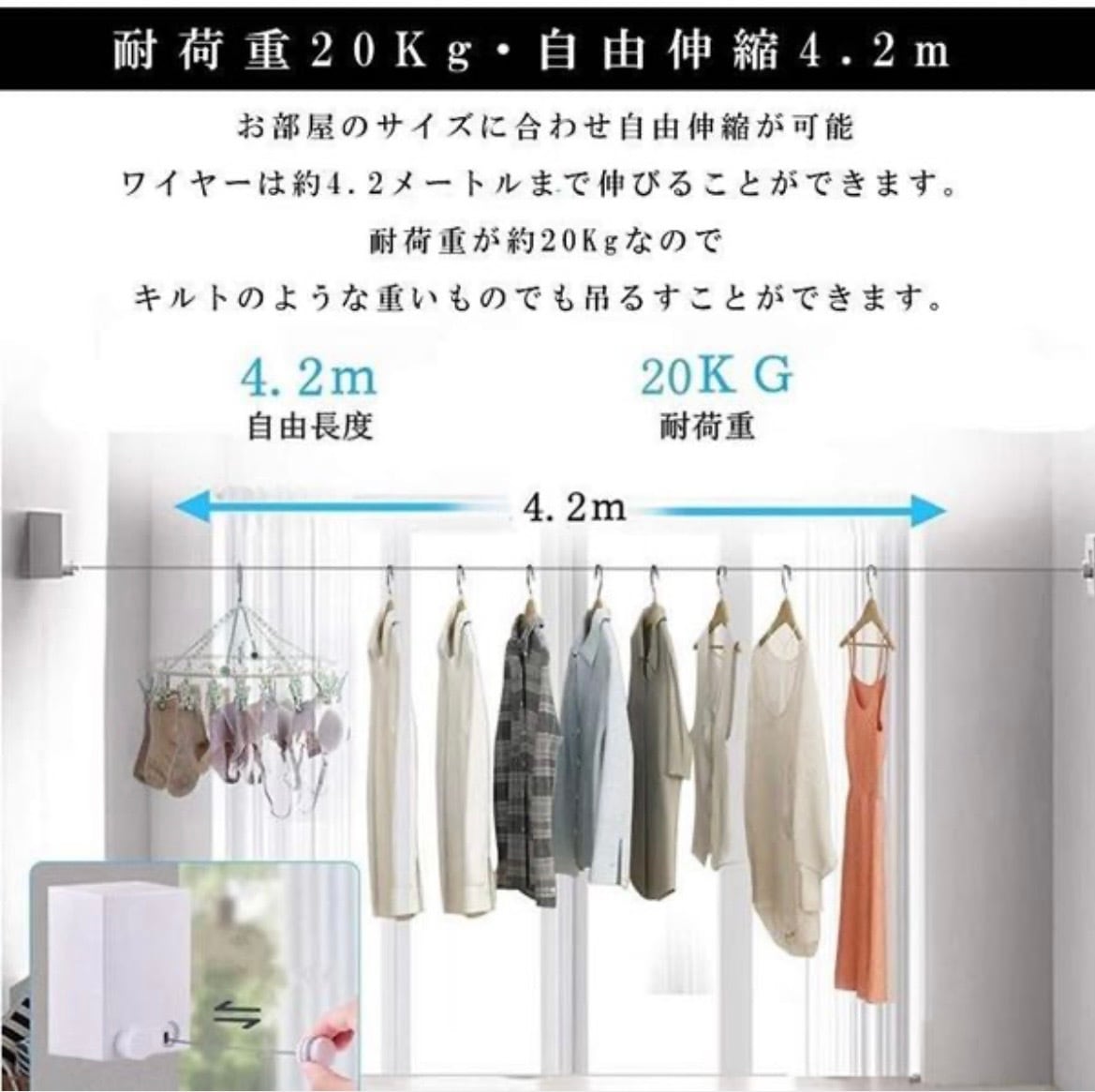 - この伸縮物干しワイヤーは、洗濯物の干し場としてだけでなく、さまざまなシーンで活用できる理想的なアイテムです!