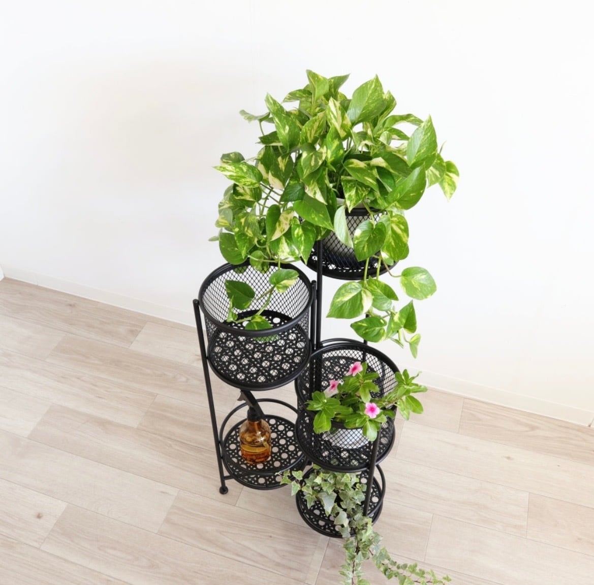 心地よさとスタイリッシュさを兼ね備えた、【北欧モダン・3段アイアンポットスタンド】。植物を美しく飾り、お部屋の雰囲気をアップさせるための必須アイテムです!