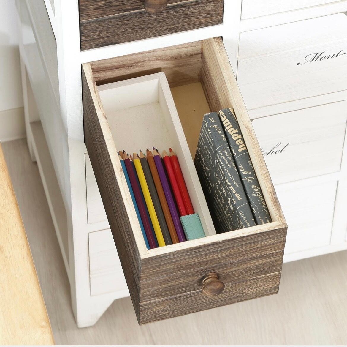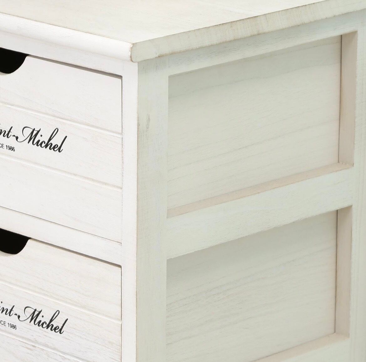 - エレガントでクラシックなデザインが特徴で、リビングや寝室、オフィスなど、どんなインテリアにも温かみをプラスします。このアンティークチェストは、使い勝手を重視した4段構造で、必要なものをすぐに取り出せる利便性を追求しています!