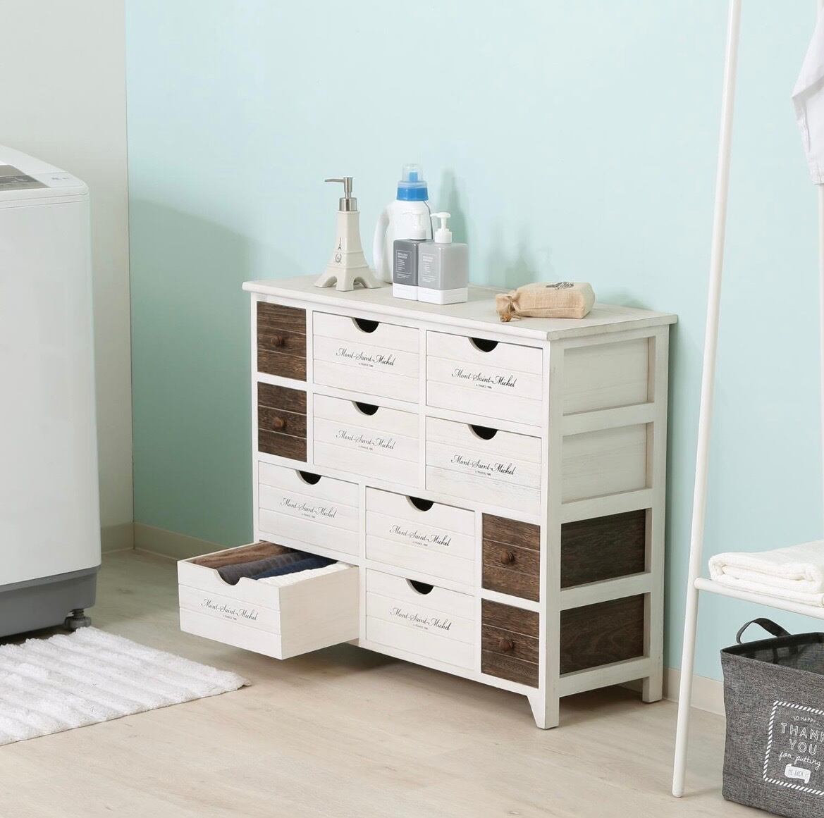心地よさと優雅さを兼ね備えた、【アンティークチェスト 4段 L ミッシェル2】。お部屋の雰囲気を引き立て、洗練された収納を実現するための必須アイテムです!