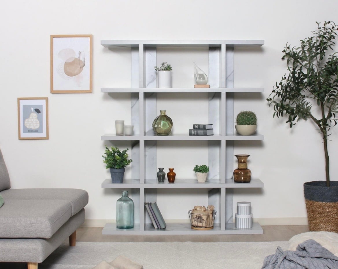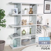 心地よさと洗練さを兼ね備えた、【FUGAオープンシェルフ5段幅広 大理石】。お部屋の収納力を高め、スタイリッシュな雰囲気を演出するための必須アイテムです!