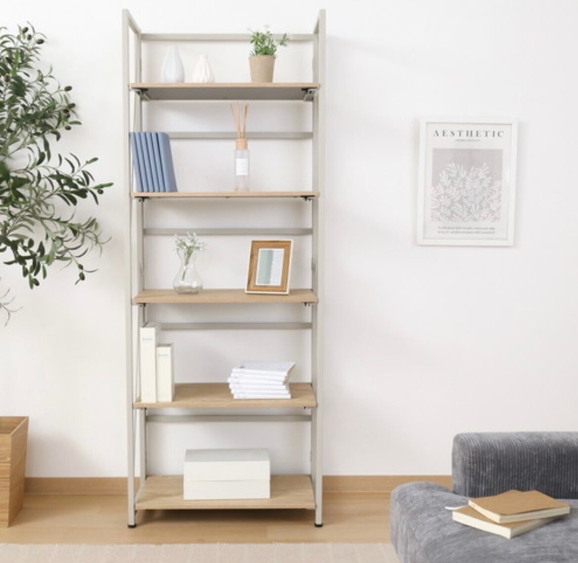 心地よさと収納力を完璧に兼ね備えた、【折りたたみシェルフ アロン5段】。スペースを有効利用し、生活空間をスッキリと整理するための必須アイテムです!