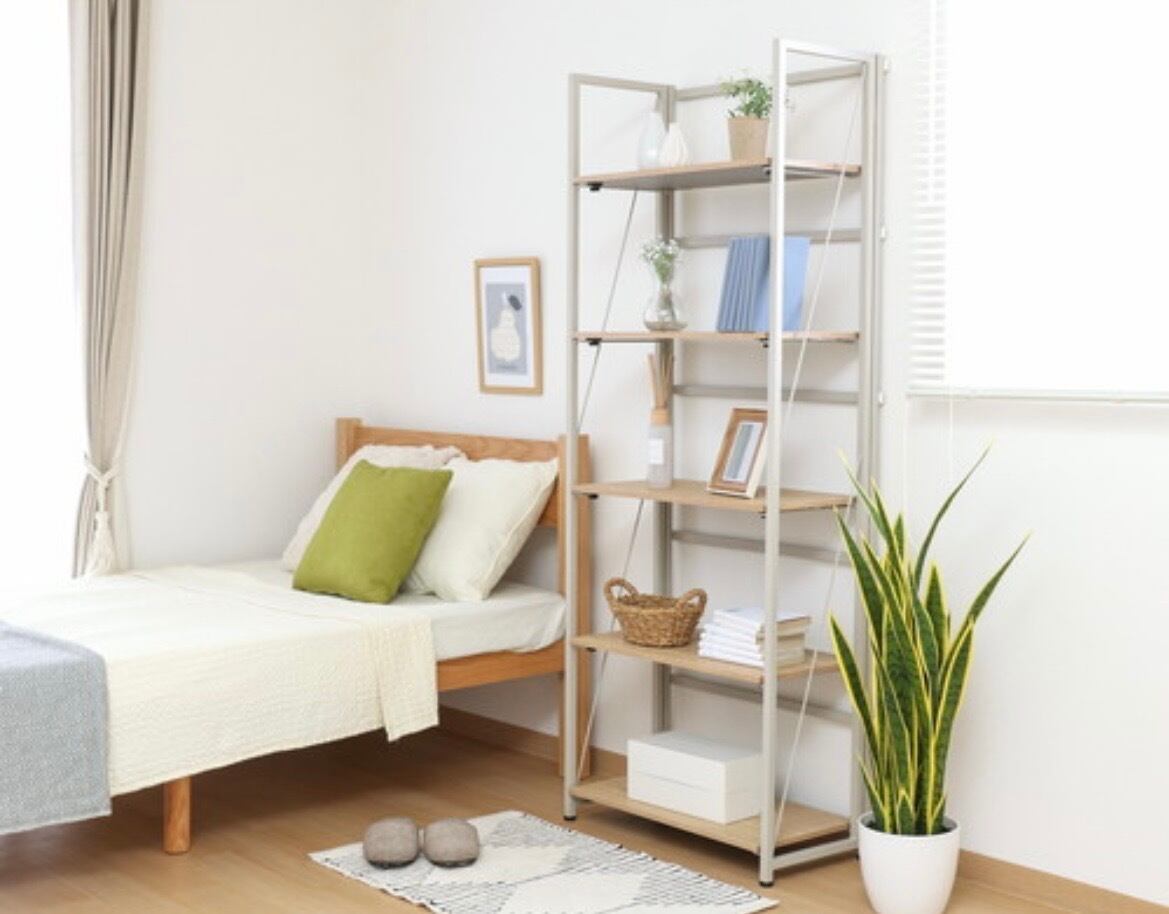 - スリムなデザインでありながら、豊富な収納力を誇る5段タイプが特徴です。このシェルフは、お気に入りのアイテムや書籍を美しくディスプレイし、インテリアの一部としても楽しむことができます!